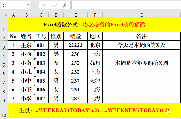 八、Excel技巧:快速計算當(dāng)前日期屬于本周的第幾天或本年的第幾周。