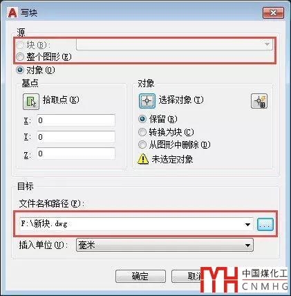 寫塊對話框界面跟創(chuàng)建塊類似,只是塊名變成了文件名,如下圖所示。