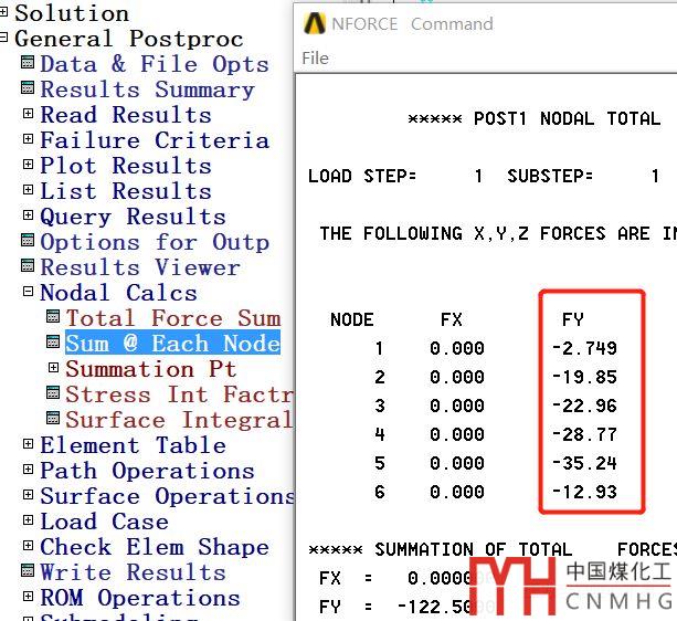 求解后,查詢各個節(jié)點(diǎn)處的反力