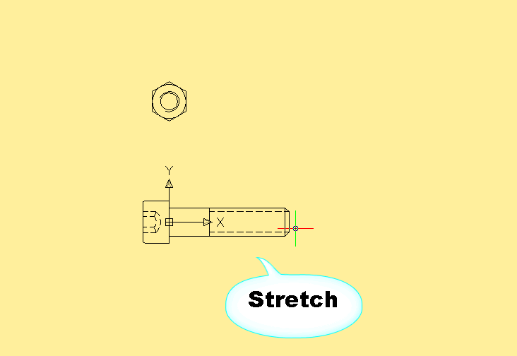 動(dòng)態(tài)塊定義的關(guān)鍵是合理設(shè)置參數(shù)和動(dòng)作,讓圖塊按我們的需要進(jìn)行變化。下面是一個(gè)螺釘?shù)膭?dòng)態(tài)塊,通過(guò)設(shè)置線型參數(shù)和拉伸動(dòng)作的配合,可以改變螺釘?shù)拈L(zhǎng)度。此外通過(guò)參數(shù)和查詢動(dòng)作配合,可以通過(guò)調(diào)整螺釘?shù)男吞?hào)。