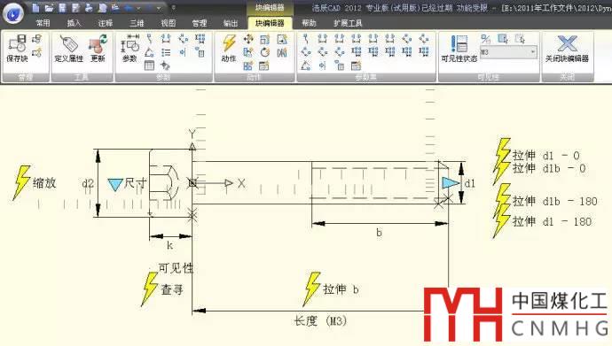 先定義普通塊,雙擊就可以進(jìn)入動(dòng)態(tài)塊編輯。定義動(dòng)態(tài)塊確實(shí)比定義普通塊要復(fù)雜多了,但千萬(wàn)不要對(duì)動(dòng)態(tài)塊那一堆按鈕所嚇倒,找一兩個(gè)實(shí)例教程的話跟著做一做,也很容易就學(xué)會(huì)了,孰能生巧,多用幾次就不覺得復(fù)雜了。