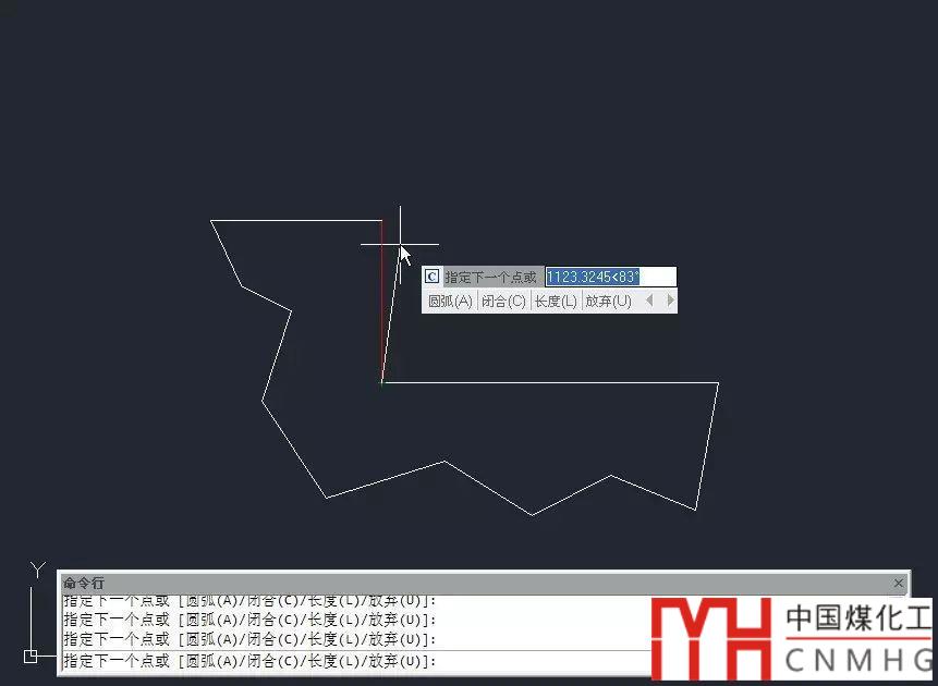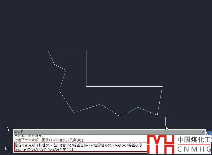 3、最后輸入C,回車,讓邊界線閉合,命令行會提示讓我們選擇邊界線起點,也就是我們還可以繼續(xù)定義其他邊界。