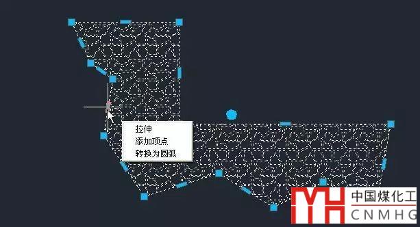 在CAD高版本,填充的邊界點是可以調(diào)整的,因此如果對繪制的邊界不滿意,可以直接拖動填充的邊界點進行調(diào)整,并可以添加和參數(shù)頂點、進行直線段和圓弧段的轉(zhuǎn)換,如下圖所示。