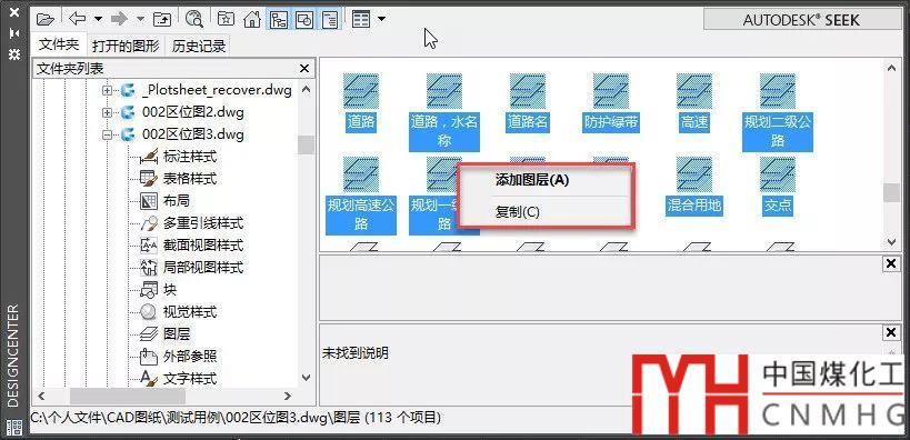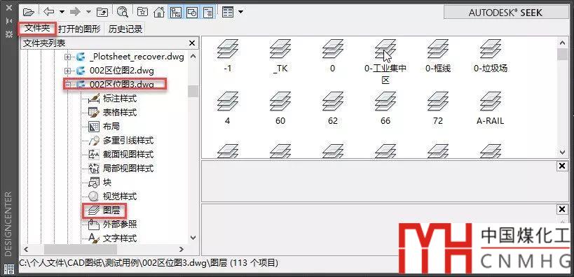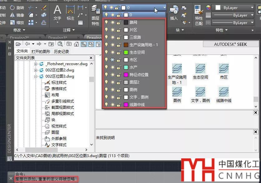 4、設(shè)計中心打開的狀態(tài)下是可以切換文檔的,我們可以切換到其他圖紙,繼續(xù)用相同的方法添加這些圖層。
