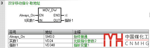 該程序段將實(shí)數(shù)1的地址(VD24)存放到指針變量“指針1”中。