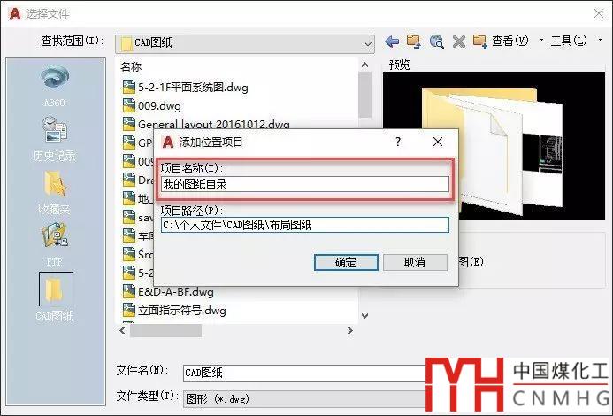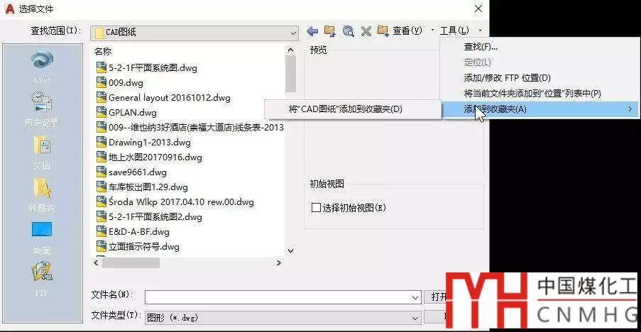 CAD文件選擇對話框中添加常用文件夾