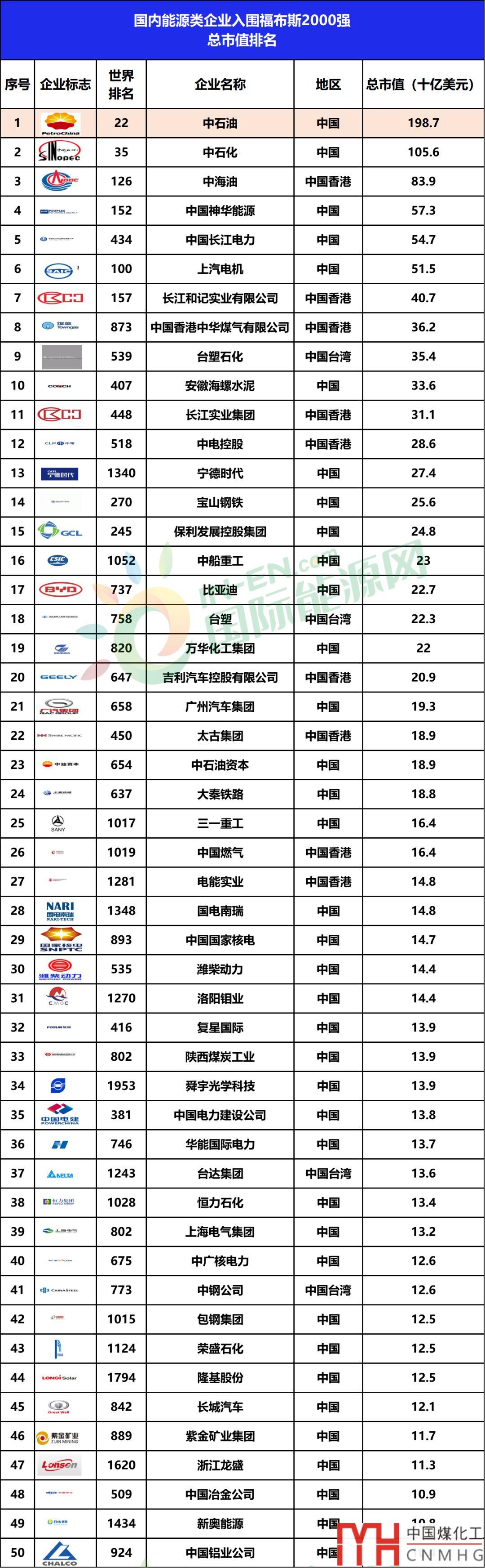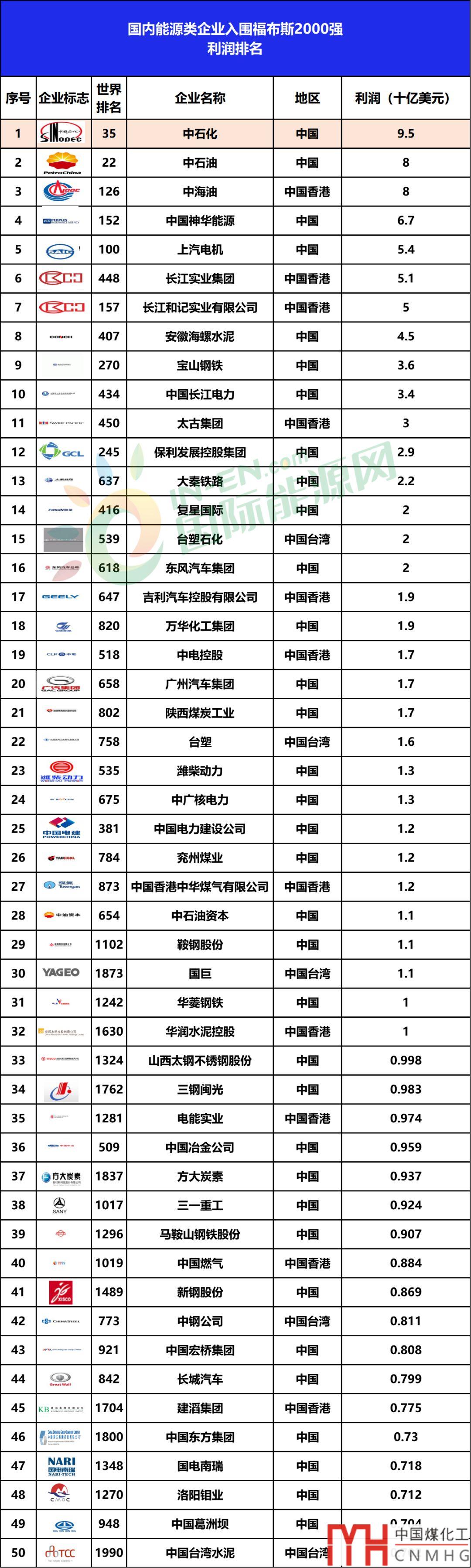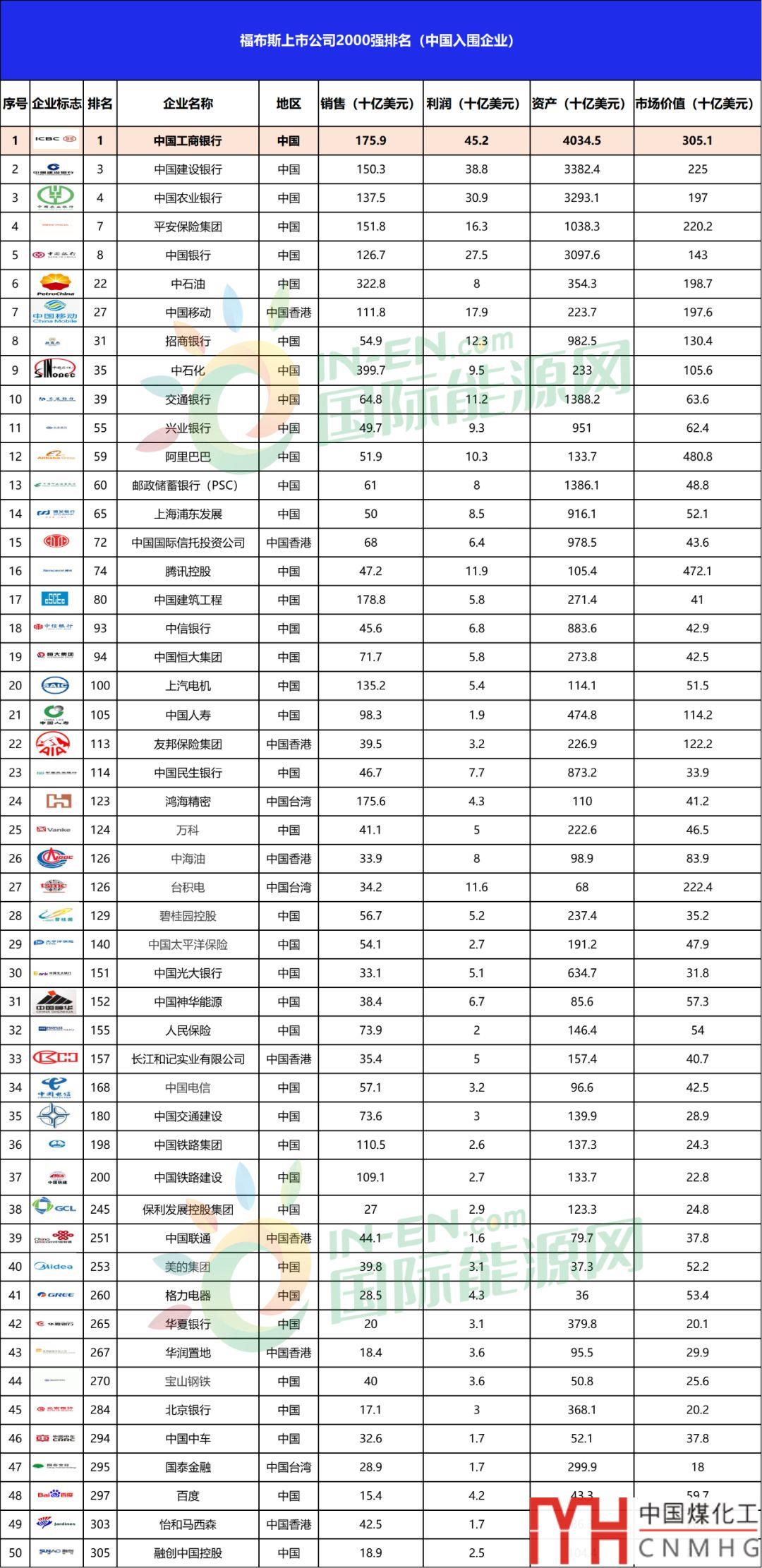 四大城燃均上榜!98家國內(nèi)能源企業(yè)登榜福布斯2019世界上市公司2000強(qiáng)!