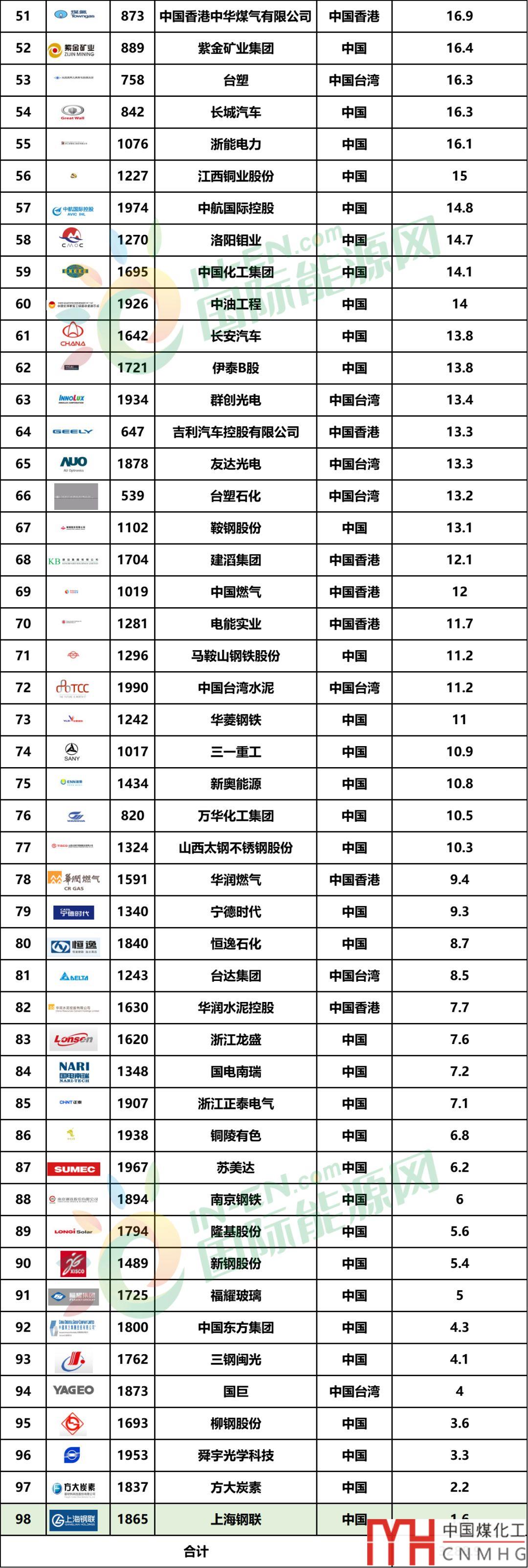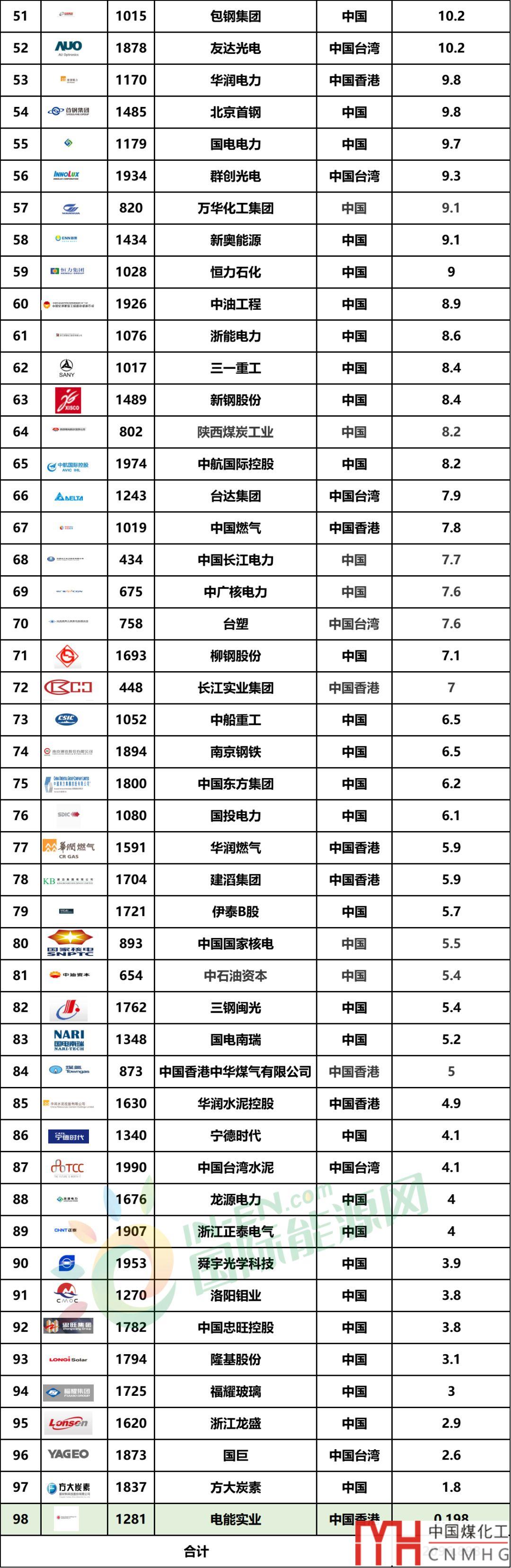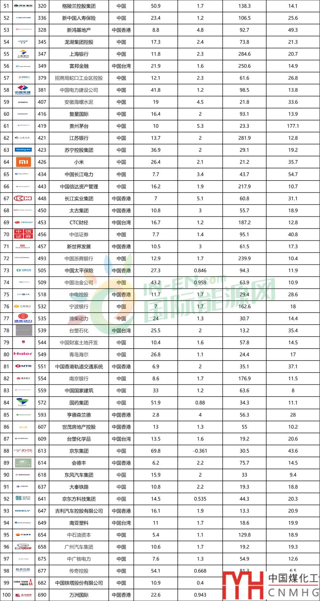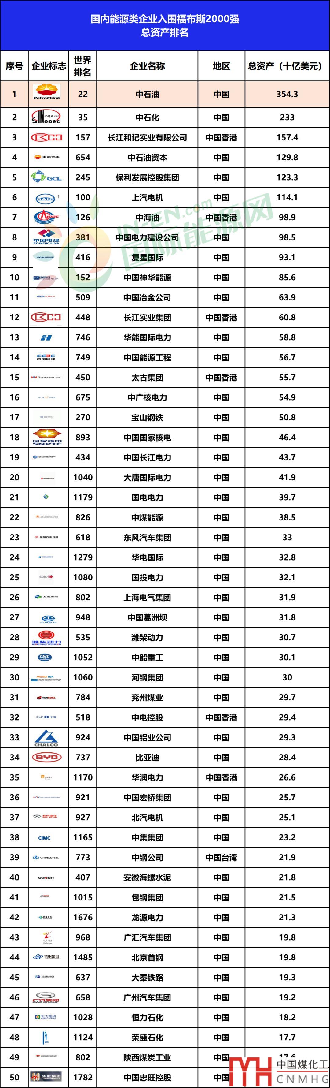 四大城燃均上榜!98家國內(nèi)能源企業(yè)登榜福布斯2019世界上市公司2000強(qiáng)!