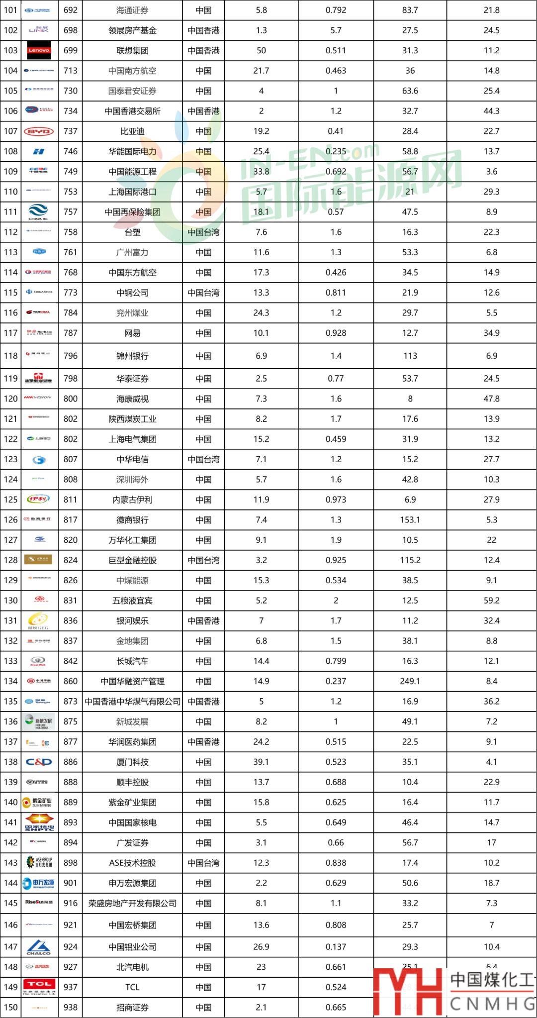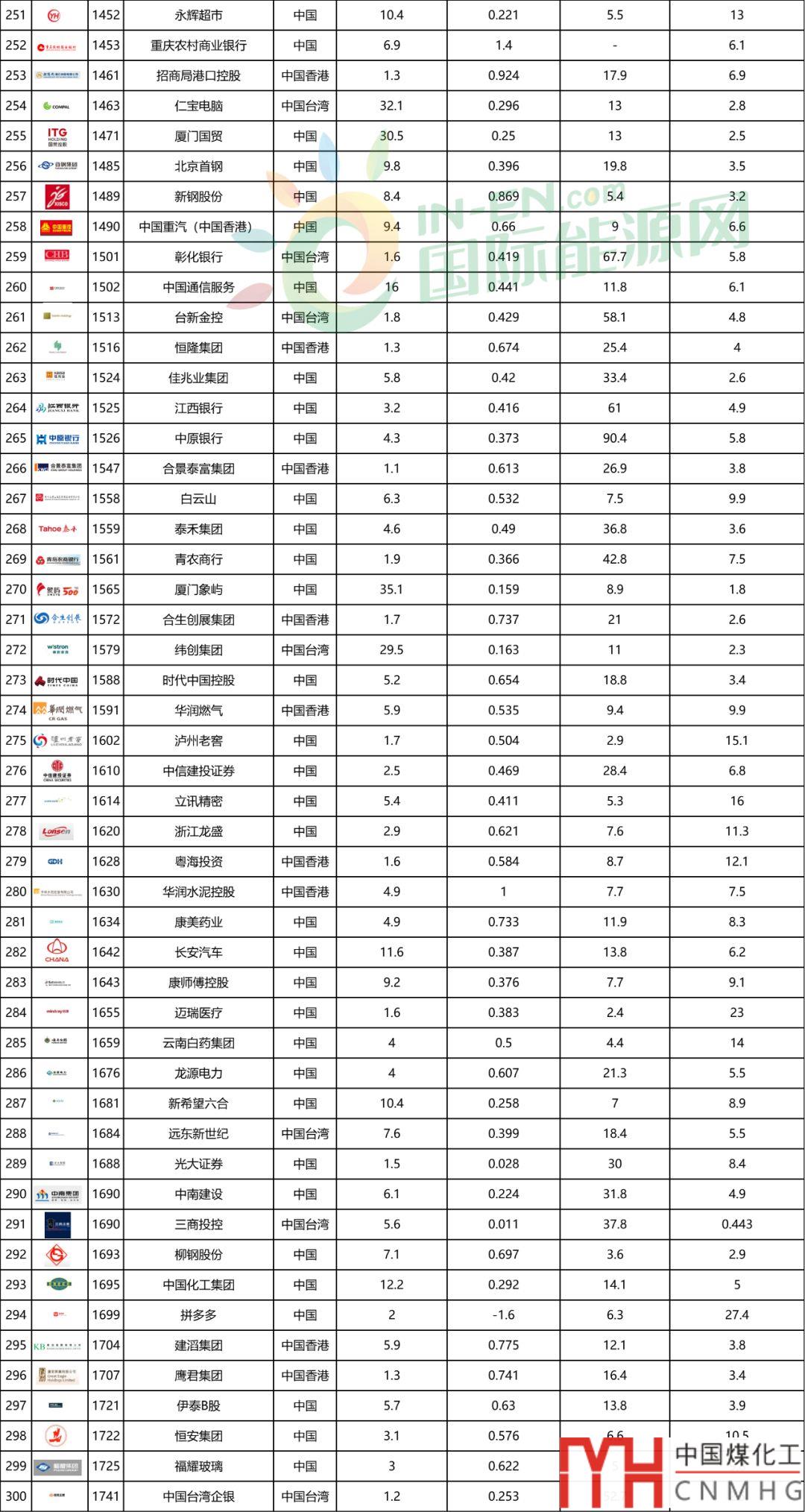 新奧能源、中國燃?xì)?、華潤燃?xì)?、中華煤氣集體上榜福布斯世界2000強(qiáng)上市公司!4大城燃總利潤30.5億美金!