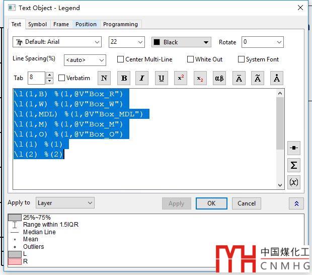 重建圖例:箱式圖的圖例默認(rèn)顯示的是圖形的統(tǒng)計信息。要顯示某個分組信息,比如本例里的L和R。