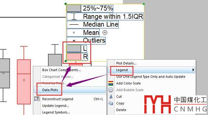 在圖例上,右擊->Legend->Data Plots,將圖形信息顯示在箱式圖中。
