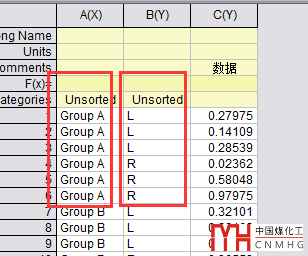 Indexed:分組信息包含在數(shù)據(jù)列里,每一列表示一個分組類型。在圖形繪制時,OriginPro軟件會自動將Indexed類型的數(shù)據(jù)轉(zhuǎn)換成Raw格式的數(shù)據(jù)。