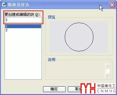 2、單擊“將塊另存為”按鈕,在彈出對(duì)話框輸入新塊的名字,如下圖所示。
