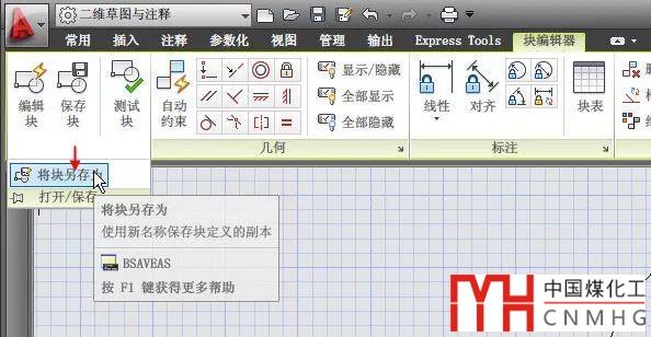 如果你懶得找按鈕,可以在進(jìn)入塊編輯器后,直接輸入BSAVEAS命令,就是SAVEAS前加一個(gè)B(圖塊),很好記。