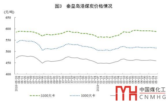 煤炭價格小幅下跌。5月31日,秦皇島5500大卡煤炭綜合交易價格為每噸588元,5000大卡為每噸515元,4500大卡為每噸459元,比4月29日分別下跌3元、2元和2元。