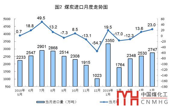 5月份進口煤炭2747萬噸,同比增長23.0%,比上月增加217萬噸;1—5月份進口煤炭12739萬噸,同比增長5.6%。