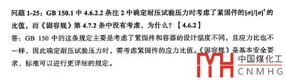 ASME VIII-1在確定耐壓試驗(yàn)壓力的時候是不考慮緊固件的,但GB150-98、GB/T150-2011是包括設(shè)備法蘭或人手孔法蘭緊固件的,而09版固容規(guī)是不考慮的,但TSG 21-2016又改為和GB/T150一致。