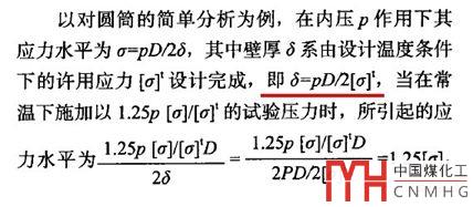 此時,在“1.25pX修正系數(shù)”試驗(yàn)壓力下,圓筒中實(shí)際的應(yīng)力是很有可能達(dá)不到1.25倍的“計(jì)算應(yīng)力”的。