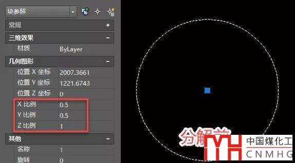 如果一個(gè)圓做成圖塊,XY軸比例不一致,就會變成一個(gè)橢圓,圖塊分解時(shí)為了保證分解前后的圖形一致,圓就被轉(zhuǎn)變成了橢圓,這也好理解。即使XY軸向比例一樣,Z軸比例不一樣,也會存在相同的問題。但XY軸比例一致,按道理二維圖形的形狀沒有變化,但CAD并沒有做這種判斷,只是判斷Z軸比例不一致就也轉(zhuǎn)換成了橢圓,如下圖所示。