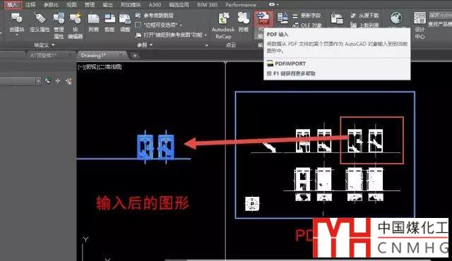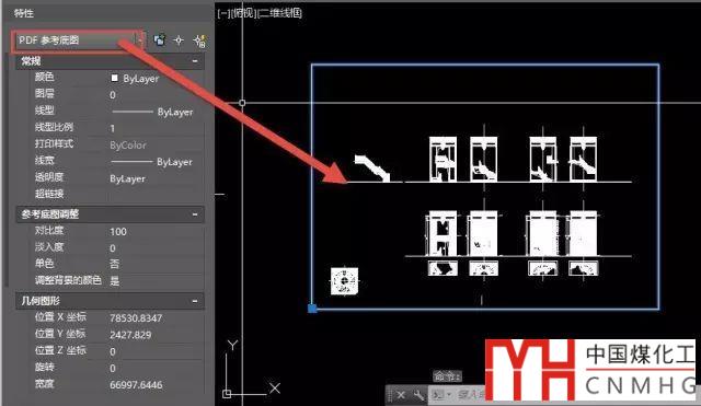 執(zhí)行輸入PDF命令后,可以選擇圖中已插入的參考底圖的部分區(qū)域或全部進行轉(zhuǎn)換,也可以直接回車選擇一個新的PDF文件進行輸入。