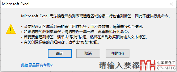 選中標題名之后,點擊工具欄剛才的圖標,只有標題,沒有數(shù)據(jù)時會彈出下面提示,沒關(guān)系,點擊確定就好