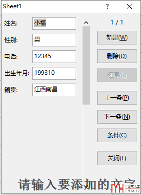 輸入完畢后,按ALT+L進行關(guān)閉"sheet1"記錄單窗口