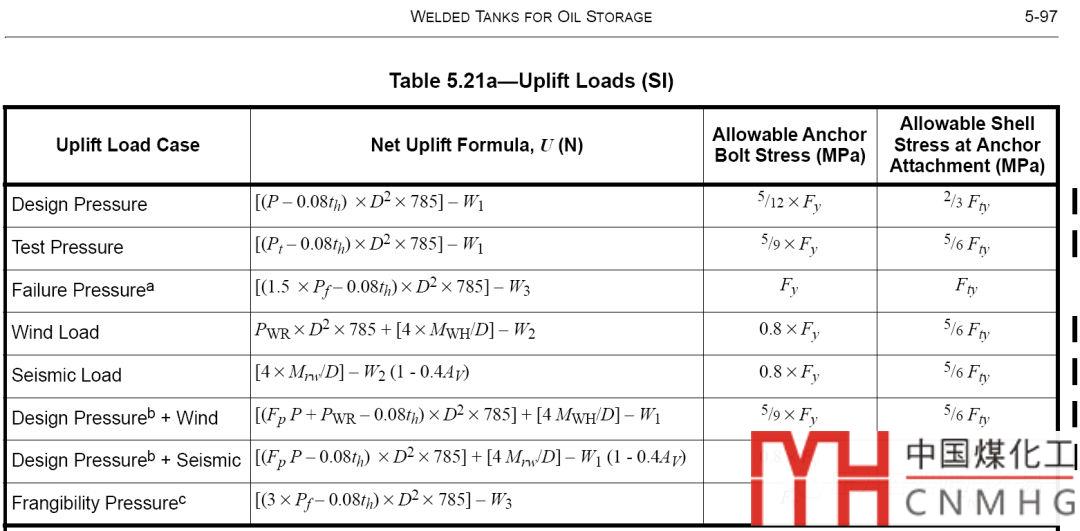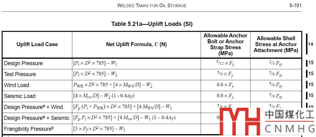 API650-2013中對(duì)于是否需要錨固,需要校核8種工況下的升舉力。