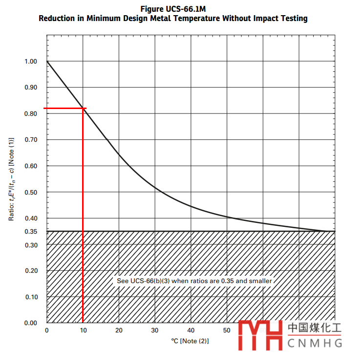 因?yàn)椴皇菨M應(yīng)力情況,MDMT還可以繼續(xù)降低。查圖UCS-66.1M,能夠降低的溫度為10°C。