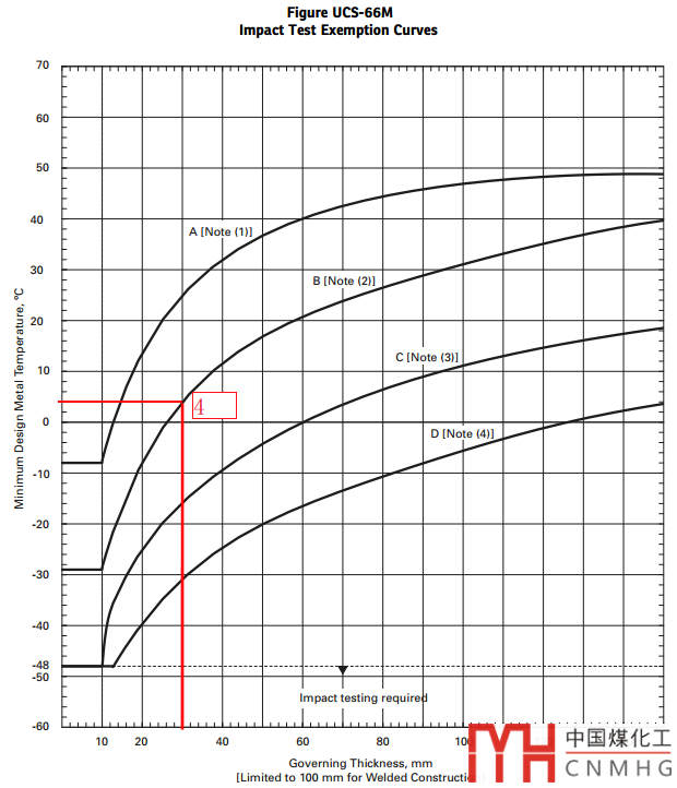 學(xué)僧:報(bào)告禪師,材料SA-51670,筒體厚度30mm,查圖UCS-66曲線B,得到MDMT=4°C。我們MDMT是-48°C。低溫了,要進(jìn)行沖擊試驗(yàn)或換材料了!