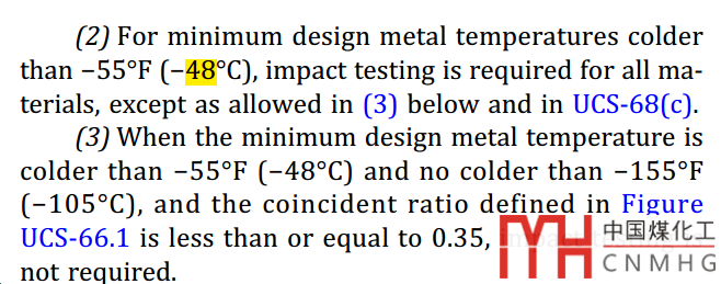 總體上,GB是劃了一根線,低于多少溫度算是低溫,以及配套的材料。而ASME的MDMT是隨著材料,厚度,應(yīng)力狀態(tài),正火,熱處理等變化的。如果能夠豁免沖擊,那么就不算低溫操作。