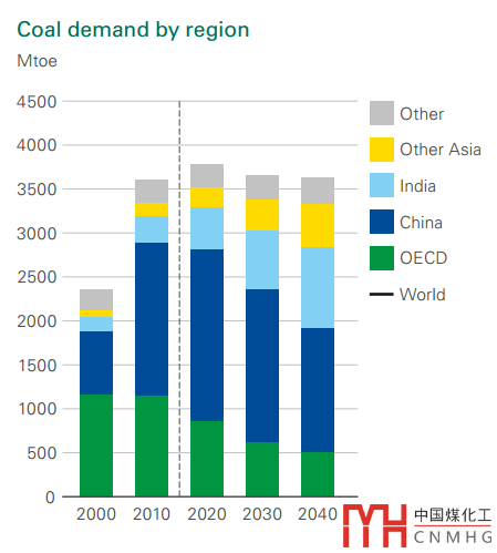 IEA指出,電力、可再生能源和能效改善蓬勃發(fā)展的態(tài)勢會抑制煤炭需求的增長。到2040年,工業(yè)煤炭消費略有增加,全球煤炭總消費保持不變,中國、歐洲和北美減少的煤炭消費與印度和東南亞增長的消費相抵。
