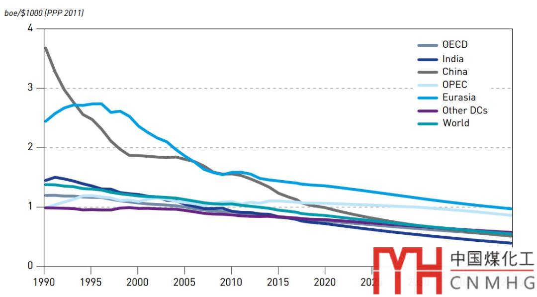 EIA預(yù)測:中國能源強度下降速度高于經(jīng)合組織國家。