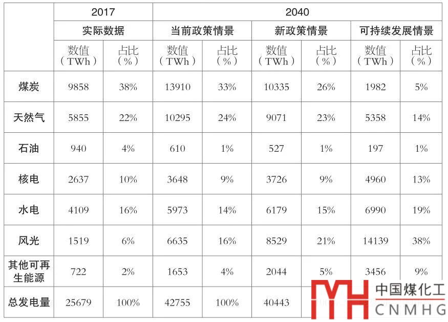 IEA數(shù)據(jù)顯示,如今電力占終端能源消費總量的19%,作為終端能源消費增長最快的部分,在接下來的25年里,電力消費增長將持續(xù)超越整個能源消費增長的速度。在IEA可持續(xù)發(fā)展情景下,2040年煤炭和天然氣在發(fā)電結(jié)構(gòu)中的占比將急劇下降。在新政策情景和當前政策情景下,化石燃料仍是發(fā)電的主要來源,煤炭仍是最大的電力來源。
