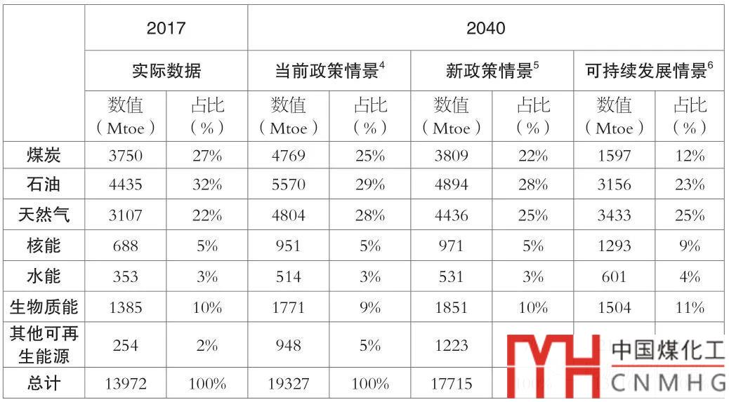 表1 2040年全球一次能源需求預(yù)測