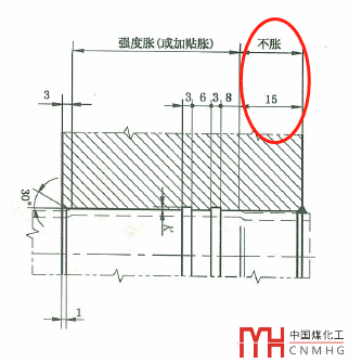 1)管子與管板脹接后,在管端應(yīng)留有15mm長的未脹管腔,以避免脹接應(yīng)力與焊接應(yīng)力的疊加,減少焊接應(yīng)力對(duì)脹接的影響。