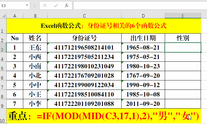 身份證號(hào)相關(guān)的6個(gè)函數(shù)公式都不掌握,還怎么成為Excel達(dá)人?