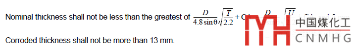 | 最小厚度 | 第7.1.3 條,不包括腐蝕裕量5mm | 第5.10.2.2條,不包括腐蝕裕量 5mm,見NOTE |