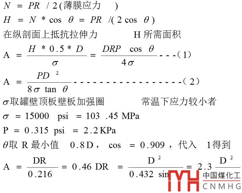 2. 此面積是計算儲罐罐頂承受外壓時需要保證的最小面積A。