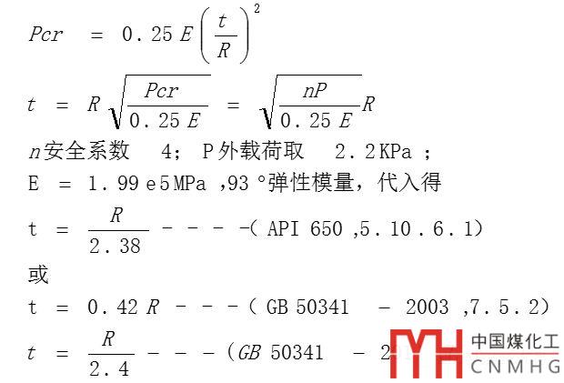 2.彈性模量隨溫度變化,當(dāng)設(shè)計溫度大于93°時,應(yīng)用實際的彈性模量,故在API650附錄M.5中,要求厚度應(yīng)該按照實際彈性模量比來相應(yīng)增加。