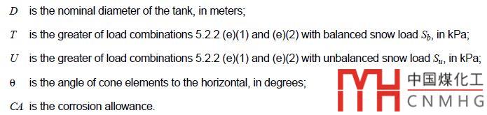 | NOTE:Any corrosion allowance for the plates of supported roofs shall be added to the greater of the calculated thickness or the minimum thickness or 5mm or 7-gauge sheet. | ||