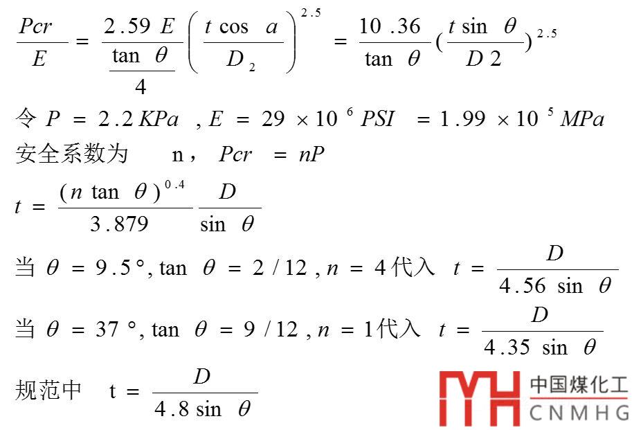 原理:是由錐殼外壓失穩(wěn)方程,經(jīng)過簡化得來的,簡化的基本假設(shè)有3個: