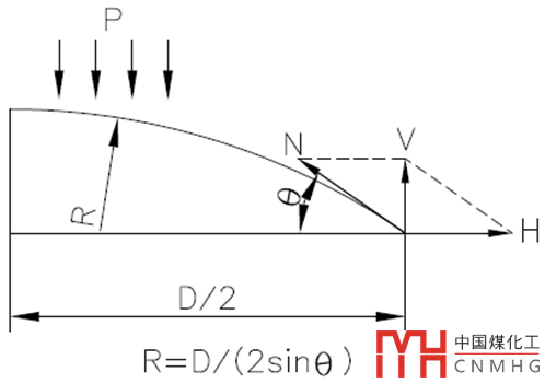 光殼拱頂一般采用帶肋的方法減薄厚度,降低造價。API650沒有帶肋拱頂,如果采用帶肋拱頂可以參照GB/T50341-2014附錄H計算。