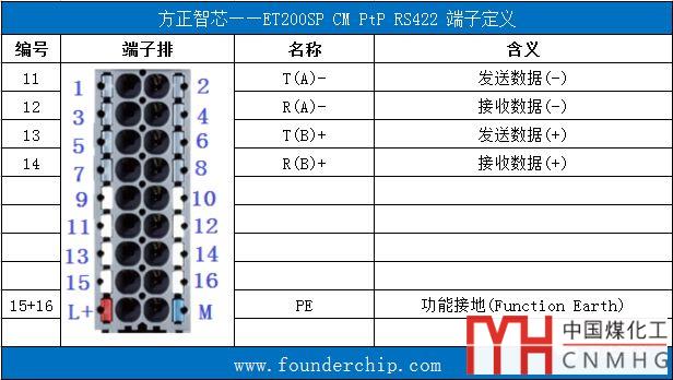 當CM PtP用于RS422連接時,使用針11到針14,各針腳的定義如下: