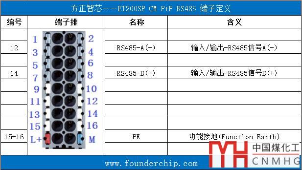 當CM PtP用于RS485連接時,使用針12和針14。針12為RS485的信號負(-),針14為RS485的信號正(+)。如下面的表格: