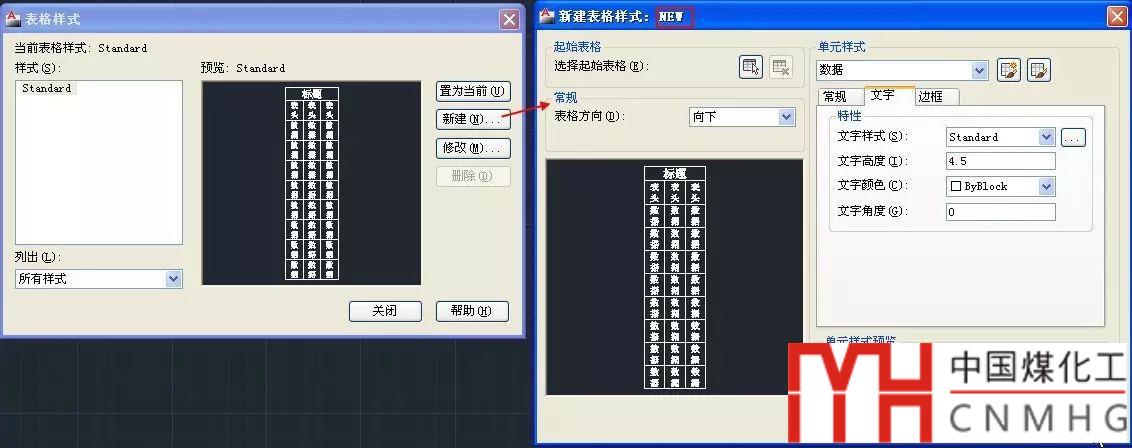 文字樣式:可在列表中選擇表格單元用的文字樣式,單擊后面的按鈕可以打開(kāi)文字樣式對(duì)話框來(lái)修改文字樣式的設(shè)置。