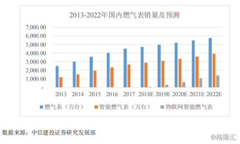 一方面,國內深度發(fā)展的城鎮(zhèn)化支撐每年大量的居民新接駁所需燃氣表,另一方面,隨著城燃企業(yè)智慧客服的逐步推進,原先安裝的機械表、IC卡表也將逐步替換為物聯(lián)網燃氣表。