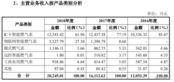 從公司主營業(yè)務收入來看,報告期內主要來源于主營業(yè)務收入,即智能燃氣表,其他業(yè)務收入為智能燃氣表檢驗設備銷售,金額較小。
