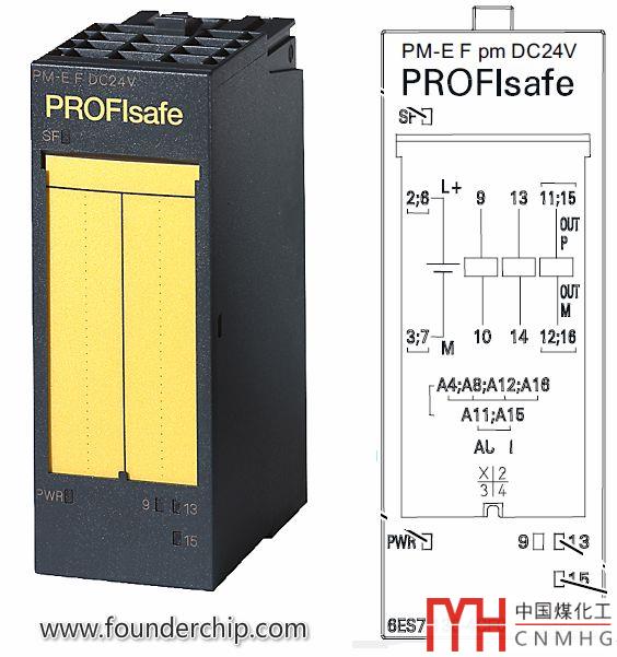 PM-E F pm 24VDC是ET200S的故障安全電源模塊,它有兩路繼電器輸出(最大負(fù)載電流10A)和兩路晶體管輸出(最大負(fù)載電流2A);負(fù)載電壓24V DC;最大安全等級可達AK6/SIL3/Category 4;具有在線診斷功能。其外觀如下圖: