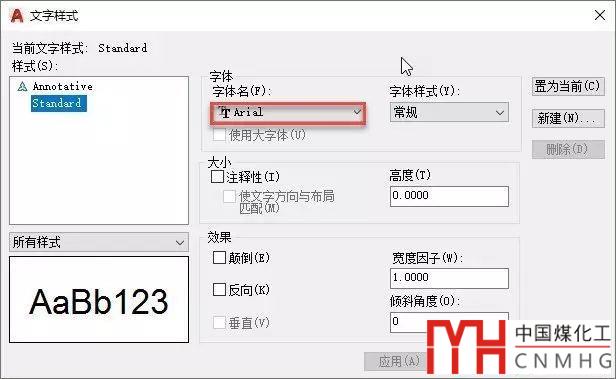 這就要看看你的文字樣式的設(shè)置了,如果你當(dāng)前文字樣式并不支持中文,如下圖所示。