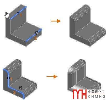 還有一些大家常用的二維編輯命令也可以直接編輯三維模型,例如倒角和倒圓角,如下圖所示。